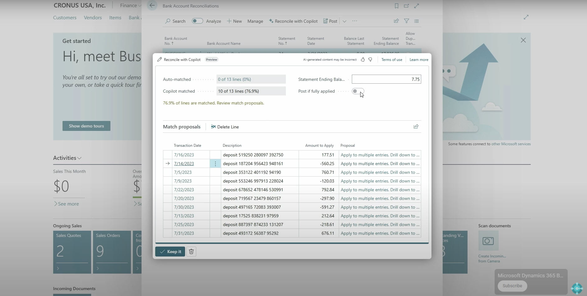 Mit Copilot wird dieser Prozess deutlich beschleunigt. Statt jede Buchung einzeln zu prüfen, kann die KI automatisch Vorschläge machen, welche Bankbewegungen zu welchen Einträgen passen. Grüne Markierungen zeigen an, wo die Zuordnung bereits stimmt. Nur Ausnahmen oder Unklarheiten müssen manuell kontrolliert werden.