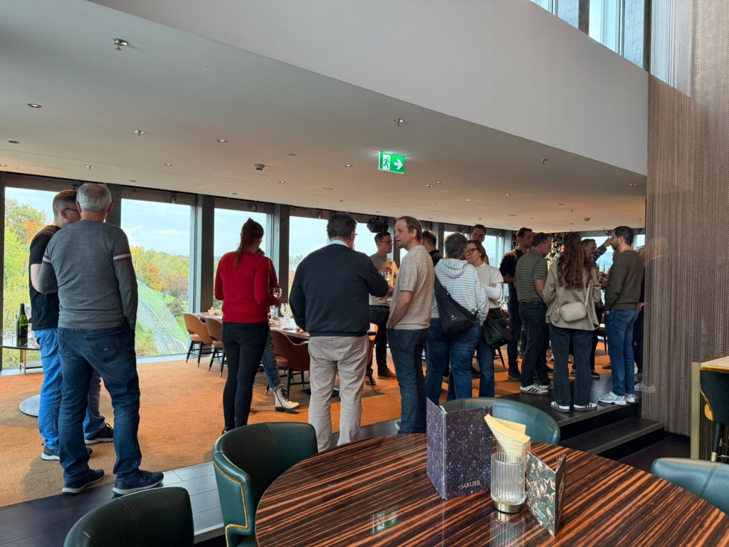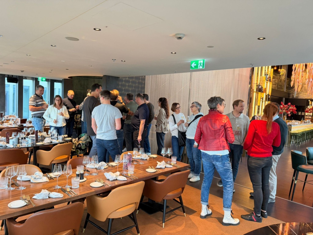 Im Anschluss an das Rennerlebnis begab sich das Team in den siebten Stock des Circles, wo im Restaurant Sablier ein exquisites Nachtessen wartete. In elegantem Ambiente und bei wunderbarer Aussicht liessen die Teilnehmenden den Abend gemeinsam ausklingen. Die entspannte Atmosphäre bot Raum für Gespräche, Austausch und das Revue-passieren-Lassen der gemeinsamen Erlebnisse.